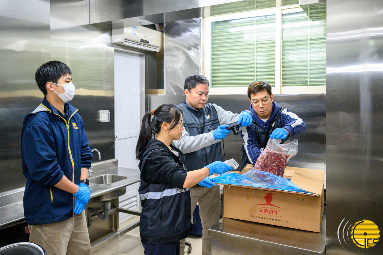 Primeiro lote de produtos alimentares de Cantão, destinados aos atletas da Zona de Competição de Macau da 15.ª edição dos Jogos Nacionais e Jogos Olímpicos Especiais para Deficientes, entregues em Macau através da Ponte Hong Kong-Zhuhai-Macau.