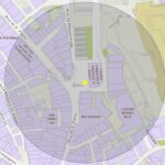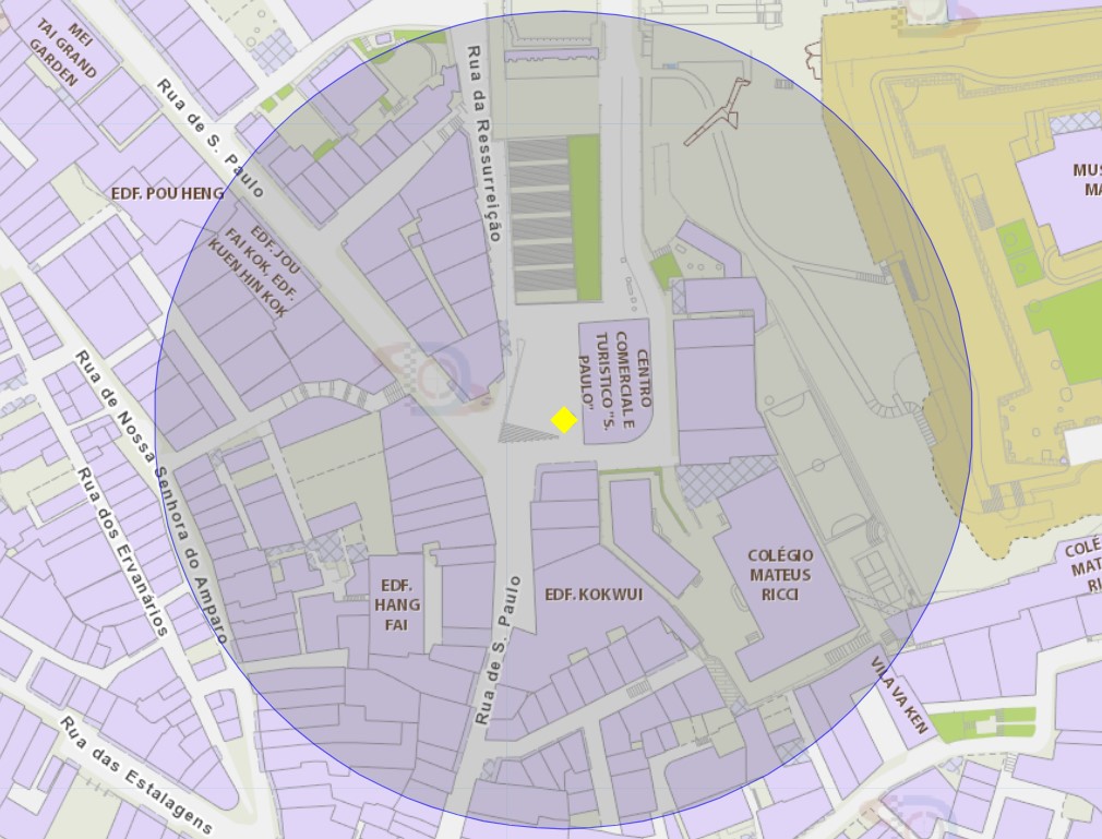 A área de um raio de 100 metros ao redor da Rua de São Paulo está delimitada como zona de risco