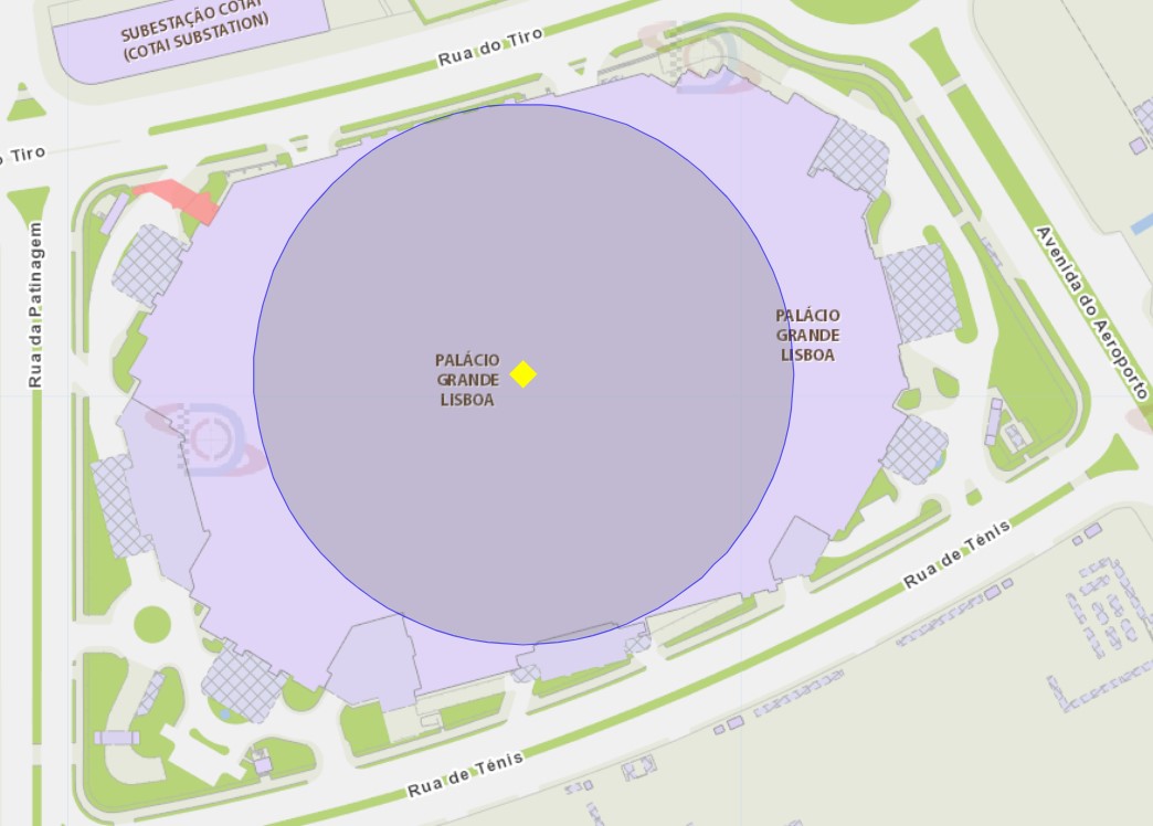1. A área de um raio de 100 metros ao redor do grand lisboa palace, está delimitada como zona de risco