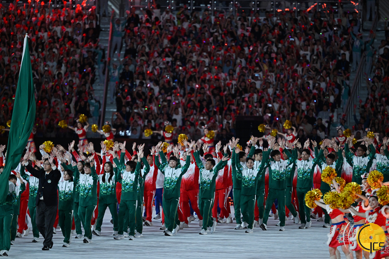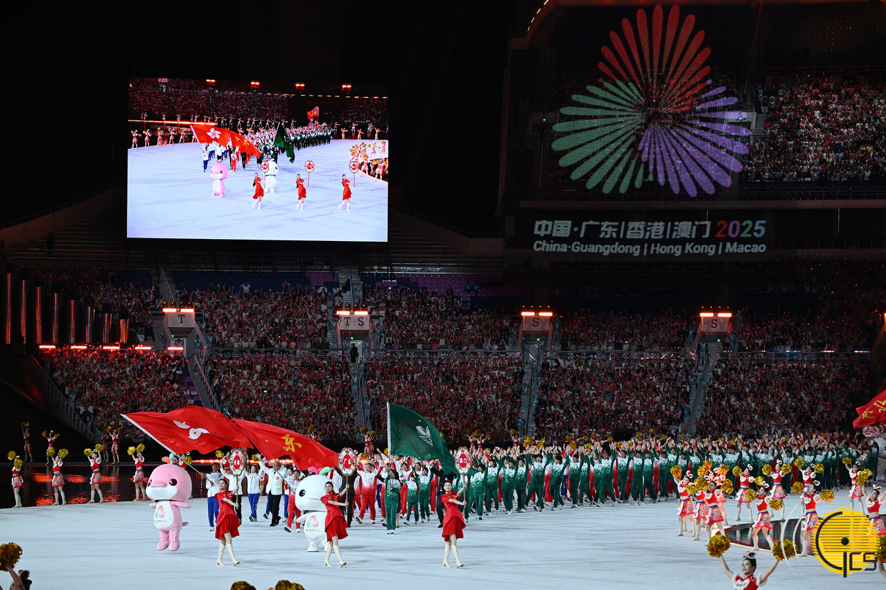 A cerimónia de inauguração da 15.ª edição dos Jogos Nacionais realizou-se no Centro Desportivo Olímpico de Guangdong em Cantão, com a abertura do evento anunciada pelo Presidente Xi Jinping. O Chefe do Executivo, Sam Hou Fai, discursou na cerimónia de inauguração. (Foto: Xinhua)