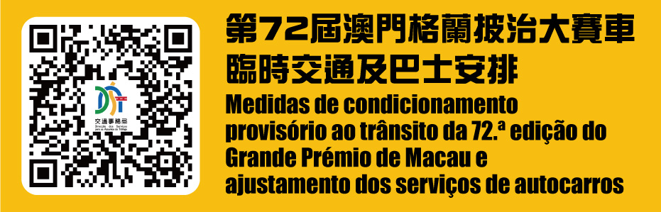 No âmbito da organização do 72.º Grande Prémio de Macau, a cargo do Instituto do Desporto, serão implementadas, de forma faseada, várias medidas provisórias de controlo de trânsito no circuito e nas vias adjacentes, entre os dias 12 (quarta-feira) e 16 (domingo) de Novembro. Entre 13 (quinta-feira) e 16 (domingo) de Novembro, um total de 52 carreiras de autocarros sofrerão ajustes temporários, estando disponíveis duas carreiras gratuitas. Para aliviar a pressão do trânsito na periferia do circuito, diversos serviços públicos, através da coordenação interdepartamental, procederam à abertura da rampa de acesso B e ao ajuste dos planos de execução de algumas obras viárias, com o objectivo de melhorar a capacidade de circulação. Para mais detalhes sobre as medidas provisórias de trânsito e os ajustes nas carreiras de autocarros, consulte a página dedicada da Direcção dos Serviços de Assuntos de Tráfego (DSAT): https://www.dsat.gov.mo/dsat/subpage.aspx?a_id=1761559294.