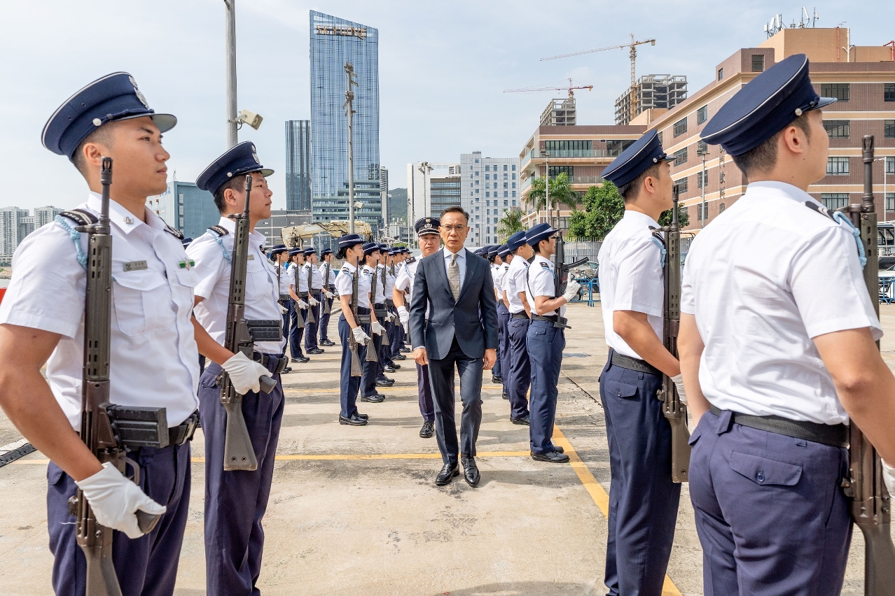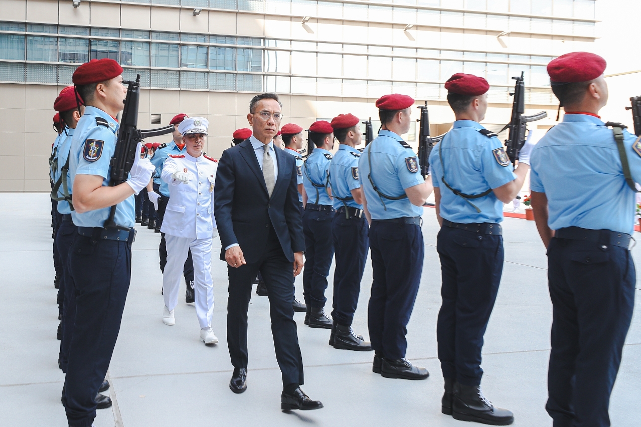 O Secretário para a Segurança, Chan Tsz King, deslocou-se às várias corporações e serviços de segurança onde efectuou visitas, passou em revista e procedeu a acções de intercâmbio com o pessoal da linha da frente