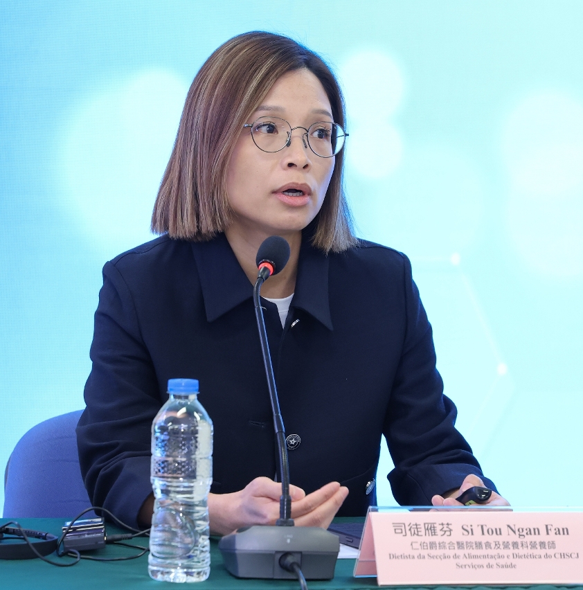 A Enfermeira-chefe do Centro de Saúde de Fai Chi Kei, Sou Man I, e a nutricionista da Secção Alimentação e Dietética do CHCSJ, Si Tou Ngan Fan, apresentaram os cuidados de saúde diários e as observações alimentares diárias contra a diabetes, respectivamente. Em 2024, os centros de saúde de Macau prestaram cuidados de saúde a mais de 38 mil doentes diabéticos, o que representa um aumento de 11,25% em relação ao ano de 2023. Os Serviços de Saúde salientam que os doentes diabéticos devem submeter-se periodicamente a consultas de seguimento, análise sanguínea e rastreio de complicações, não interrompendo, por sua iniciativa, o acompanhamento médico e o tratamento medicamentoso. Para prevenir diabetes, não é necessário fazer cálculos complicados ou seguir uma dieta dolorosa, basta ajustar a ordem dos alimentos, adicionar fibras à alimentação, evitar bebidas com açúcar, manter uma dieta regular, praticar exercício físico adequado e gerir o peso, a fim de estabelecer facilmente uma base saudável. É igualmente importante incentivar todos os doentes crónicos a adoptarem estilos de vida saudáveis.