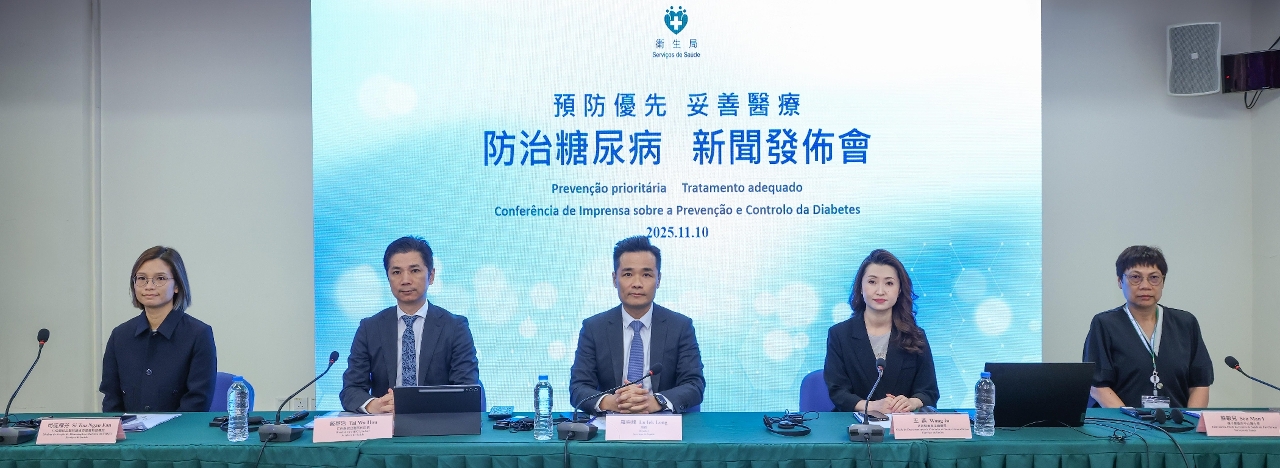 Na segunda-feira (dia 10), os Serviços de Saúde realizaram uma conferência de imprensa sobre a prevenção e controlo de diabetes, que destacou a prevenção de diabetes e a auto-gestão das doenças crónicas. Nesta conferência, foi apresentada a situação epidemiológica de diabetes em Macau, os factores de alto risco, os sintomas e as complicações, os cuidados de saúde diários e observações alimentares, bem como os trabalhos de prevenção e controlo das doenças crónicas em Macau, a fim de aumentar os conhecimentos dos residentes sobre diabetes e doenças crónicas e reforçar a consciência de prevenção.