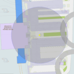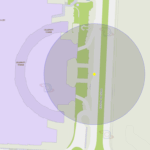 Zona de risco com um raio de 100 metros nas proximidades da Zona de espera de autocarros na zona do Posto Fronteiriço da Parte de Macau do Posto Fronteiriço Hengqin