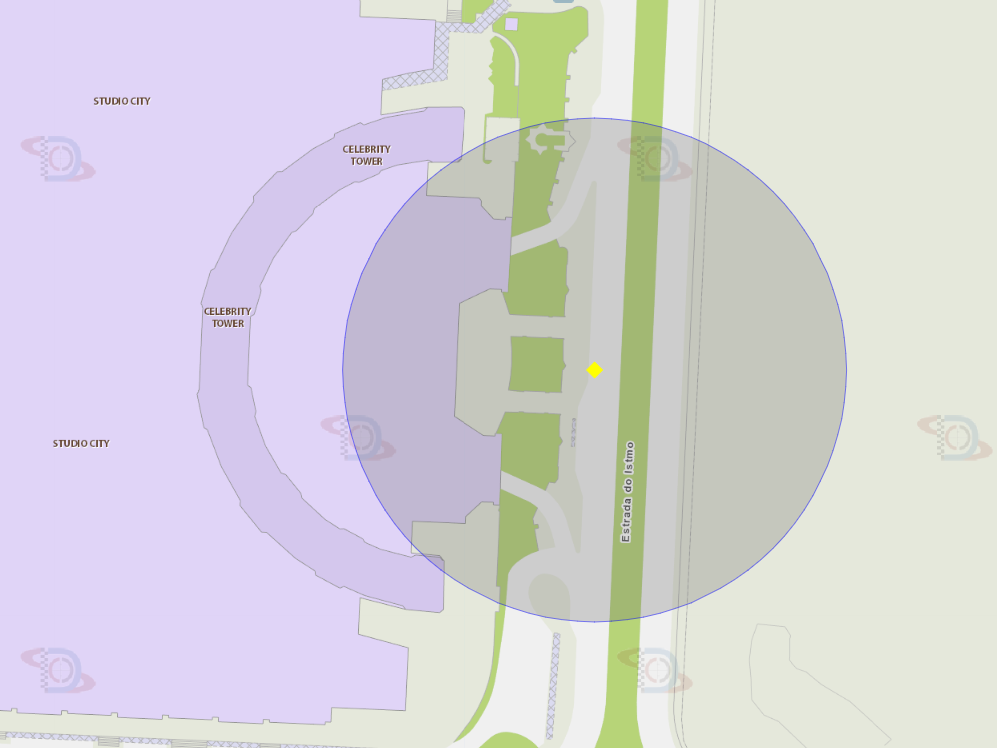 Zona de risco com um raio de 100 metros nas proximidades da Zona de espera de autocarros na zona do Posto Fronteiriço da Parte de Macau do Posto Fronteiriço Hengqin