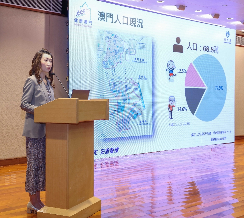 A Chefe do Departamento de Cuidados de Saúde Comunitários, Wong In, , apresentou os trabalhos de prevenção e controlo das doenças crónicas. Através do «Sistema de Indicadores da Qualidade para a Gestão das Doenças Crónicas», foi elevado com sucesso a taxa de terapia e controlo das doenças dos doentes com hipertensão e diabetes.