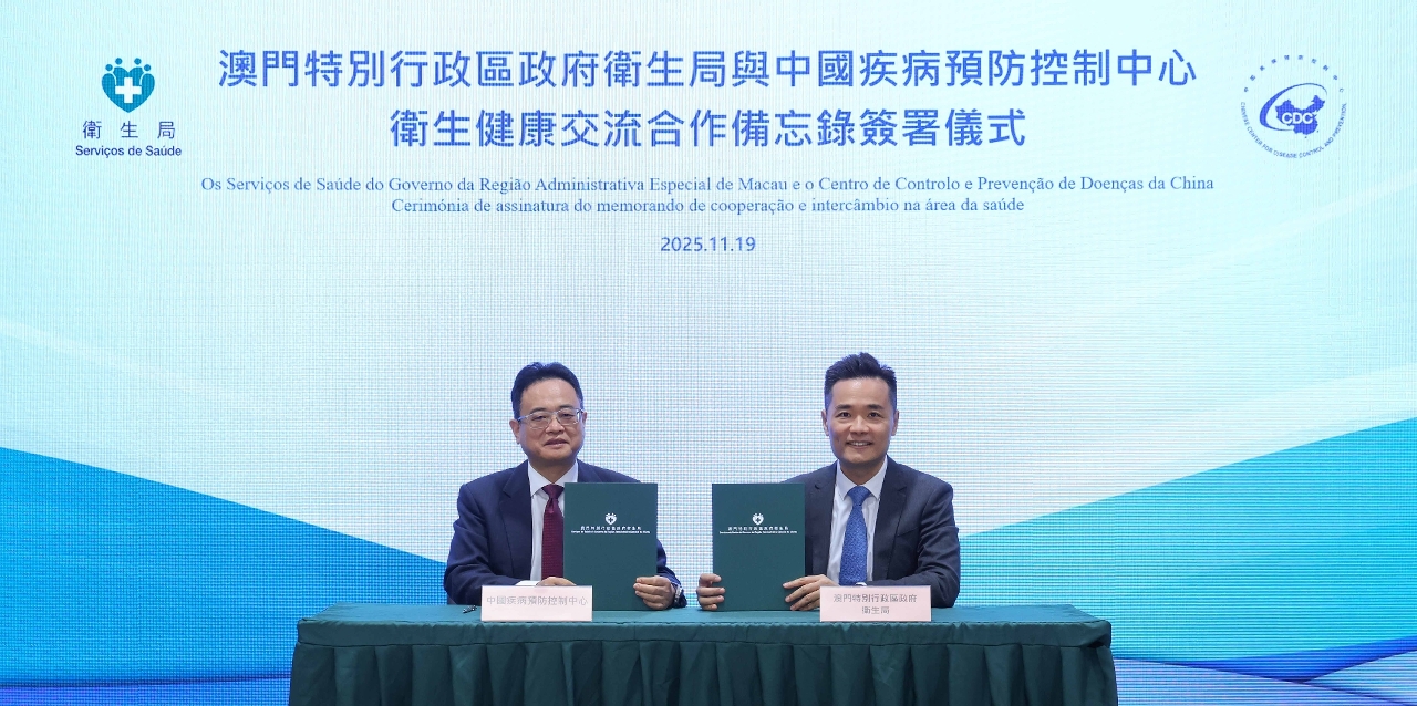 Na quarta-feira (dia 19), o Director dos Serviços de Saúde, Lo Iek Long, a Chefe do Centro de Prevenção e Controlo de Doenças (CDC), Leong Iek Hou e a Directora do Laboratório de Saúde Pública, Loi I Leng, realizaram um colóquio, com a delegação chefiada pelo Director do Centro de Prevenção e Controlo de Doenças da China (CPCDC), Wang Jianwei, no qual as duas partes assinaram o «Memorando de Cooperação e Intercâmbio na área da Saúde», com o objectivo de reforçar a cooperação nas áreas de prevenção e controlo de doenças transmissíveis, de prevenção e controlo integrado de doenças crónicas e de saúde pública.