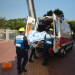 Ao receber a chamada, o CB mobilizou de imediato três viaturas de emergência e 15 elementos para o local para efetuar o resgate. A equipa de salvamento em altura utilizou pontos de ancoragem e cordas para descer até à localização onde a pessoa envolvida se encontra, levando-o lentamente até ao chão. Após a prestação de cuidados médicos preliminares, o indivíduo foi encaminhado para o hospital.