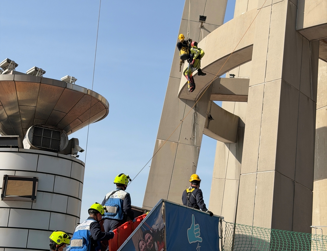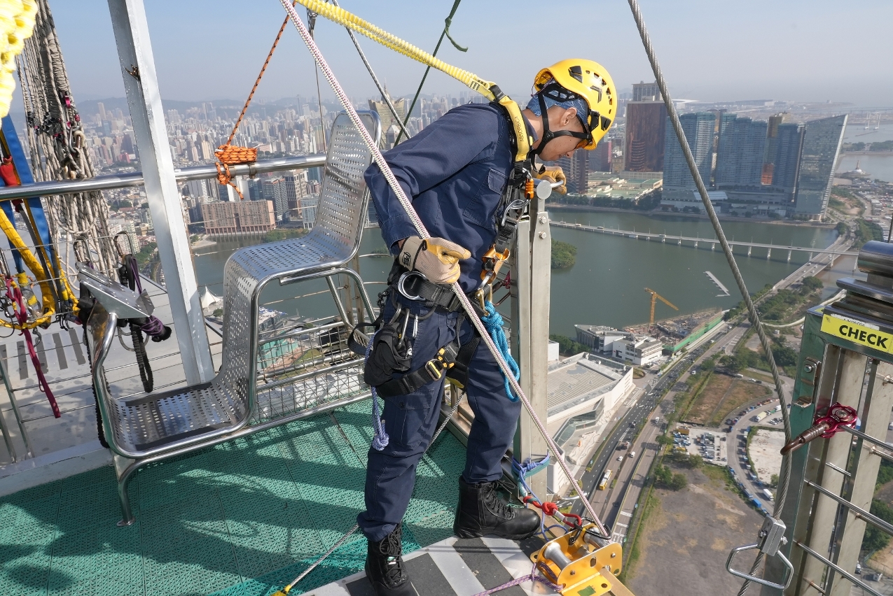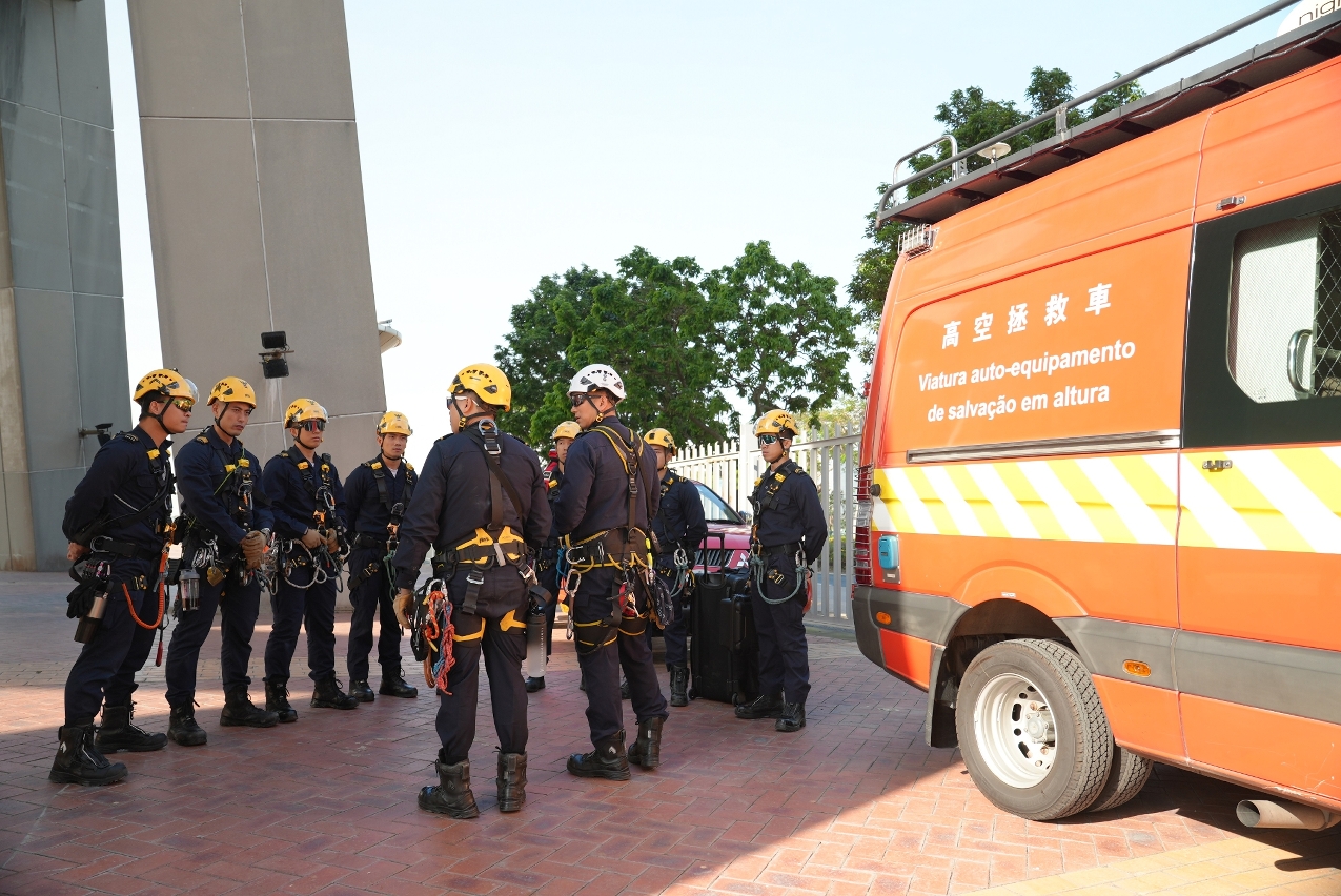 Com o objectivo de melhorar as competências técnicas e a capacidade de resposta a emergências dos elementos do Corpo de Bombeiros (CB) em operações de resgate em altura, bem como reforçar a comunicação e a coordenação com a Torre de Macau em caso de emergências, foi realizado, na parte da manhã de 26 de Novembro de 2025, um exercício de salvamento em grande altura na Torre de Macau.
