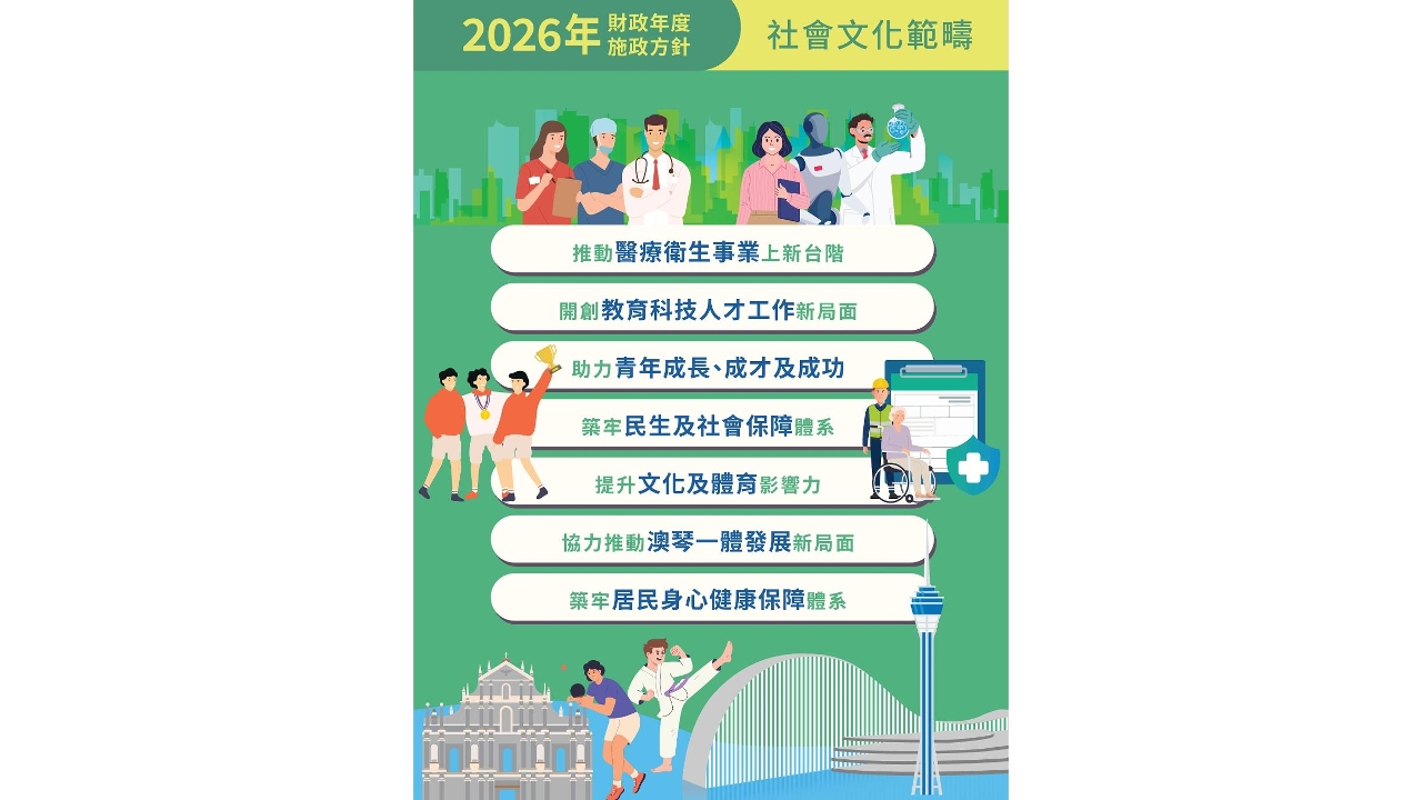 【Infografia】Linhas de Acção Governativa da Área dos Assuntos Sociais e Cultura para 2026