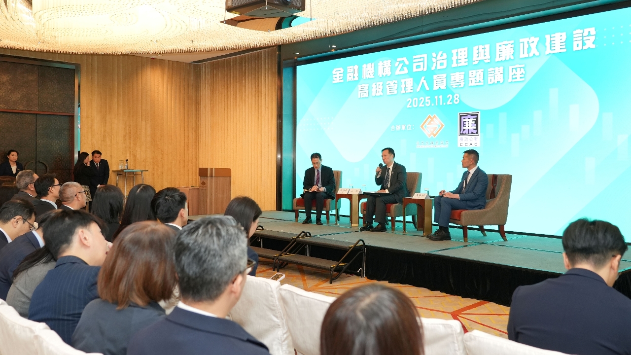 Com o objetivo de reforçar a sensibilização do sector financeiro para o cumprimento da legislação e a sua capacidade de construção de honestidade e de integridade, a Autoridade Monetária de Macau (“AMCM”) e o Comissariado contra a Corrupção (“CCAC”) organizaram recentemente uma “Palestra temática sobre Governação Corporativa e Construção da Integridade nas Instituições Financeiras”, tendo participado mais de 70 instituições financeiras, incluindo bancos, companhias de seguros, sociedades gestoras de fundos de pensões privados, sociedades de locação financeira e instituições de pagamento, contando com a presença de cerca de 300 quadros médios e superiores de instituições financeiras.