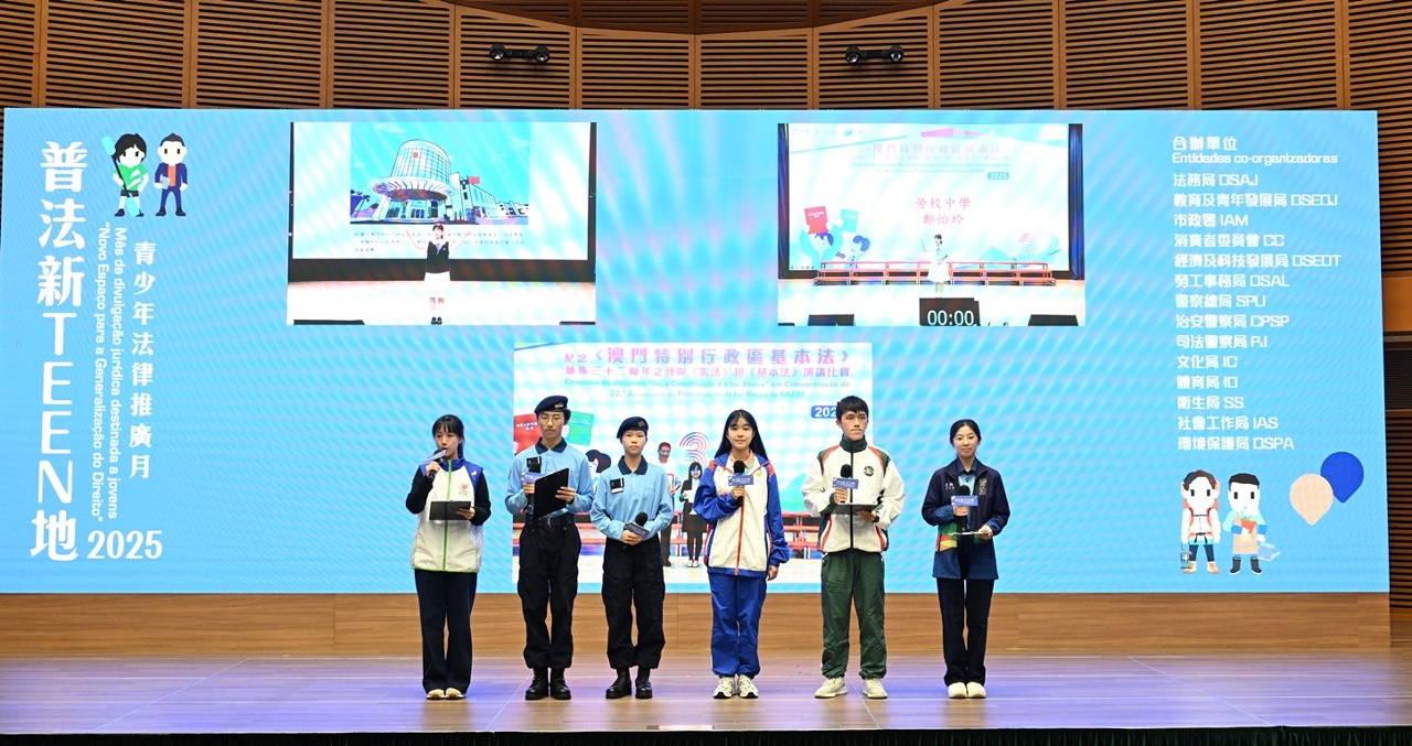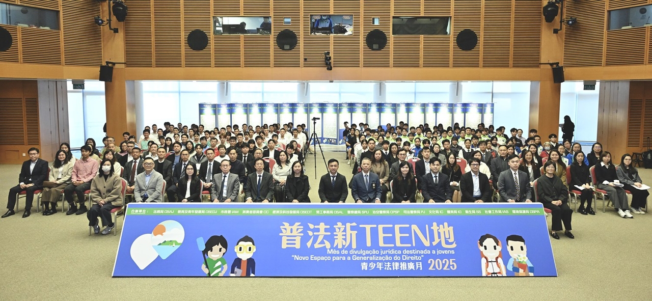 De forma a divulgar, continuadamente, os conhecimentos jurídicos aos jovens e reforçar o seu conhecimento e a sua consciência para o cumprimento da lei, o grupo de acompanhamento interdepartamental da “Política de Juventude”, constituído pela Direcção dos Serviços de Assuntos de Justiça (DSAJ), pelo Instituto para os Assuntos Municipais (IAM), pela Direcção dos Serviços de Economia e Desenvolvimento Tecnológico (DSEDT), pela Direcção dos Serviços para os Assuntos Laborais (DSAL), pelos Serviços de Polícia Unitários (SPU), pelo Corpo de Polícia de Segurança Pública (CPSP), pela Polícia Judiciária (PJ), pela Direcção dos Serviços de Educação e de Desenvolvimento da Juventude (DSEDJ), pelo Instituto Cultural (IC), pelo Instituto do Desporto (ID), pelos Serviços de Saúde (SS), pelo Instituto de Acção Social (IAS) e pela Direcção dos Serviços de Protecção Ambiental (DSPA), juntamente com o Conselho de Consumidores (CC), que participou pela primeira vez este ano, num total de 14 serviços governamentais, organizou, entre Setembro e Novembro de 2025, o mês da divulgação jurídica destinada a jovens, no âmbito da actividade “Novo Espaço para a Generalização do Direito”. Este ano, foram organizadas várias actividades temáticas sobre divulgação de leis, que incluíram palestras jurídicas, jogos online de perguntas e respostas, carnaval, cursos sobre sistemas jurídicos, palestras itinerantes realizadas em escolas, exposições de painéis itinerantes, projecto do prémio de redacção e actividades de publicidade e divulgação, entre outras. Além disso, realizaram-se, continuadamente, actividades de divulgação jurídica locais e de experiência social com visitas a Hengqin. No total, as referidas actividades contaram com um total de cerca de 137.423 participações e os destinatários destas actividades foram os licenciandos de instituições de ensino superior de Macau e estudantes do ensino não superior.