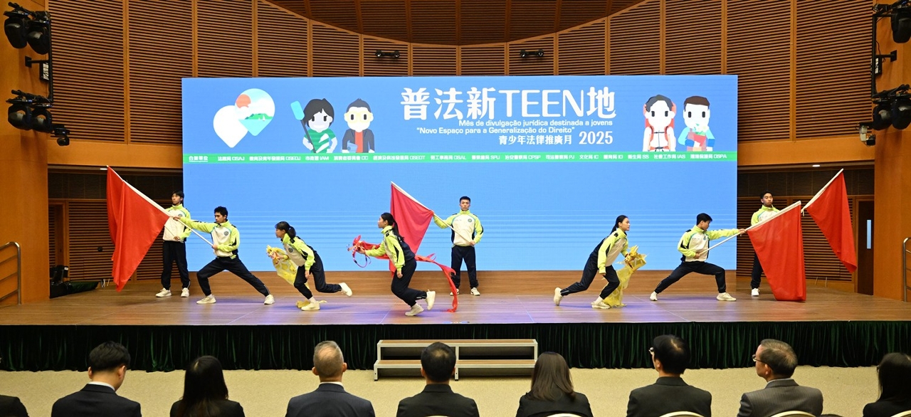 A cerimónia de encerramento do mês da divulgação jurídica destinada a jovens no âmbito da actividade “Novo Espaço para a Generalização do Direito” realizou-se, no dia 26 de Novembro, no Centro de Convenções do Centro de Ciência de Macau, demonstrando, plenamente, os resultados frutíferos da colaboração entre os 14 serviços governamentais na promoção dos conhecimentos jurídicos e na continuação da promoção dos trabalhos de divulgação de leis. Durante a cerimónia, foram exibidos vídeos com os destaques das actividades de cada serviço participante e foram atribuídos diplomas de agradecimento às escolas e às instituições participantes, bem como o prémio para obras excepcionais do “Projecto do prémio de redacção nas escolas” e prémios para diversas actividades do mês da divulgação jurídica. No evento, representantes juvenis repletos de vigor fizeram actuações fantásticas que interpretaram, de forma vívida, o espírito do sistema jurídico. Foram também montados painéis de exposição com obras excepcionais do “Projecto do prémio de redacção nas escolas”. Tanto as actuações como os painéis não só atraíram a atenção do público, como também aprofundaram o impacto e a influência da divulgação e educação jurídica. No futuro, o grupo de acompanhamento interdepartamental da “Política de Juventude” continuará a realizar, sob a forma online e presencial, actividades diversificadas de divulgação jurídica, para melhorar a compreensão correcta da Constituição e da Lei Básica de Macau pelos jovens, cultivar o interesse dos jovens pela aprendizagem das leis, respeitar o espírito do sistema jurídico e aprofundar o conhecimento dos jovens e estudantes sobre o princípio “Um País, Dois Sistemas”, a fim de promover, ainda mais, a prosperidade e a estabilidade da sociedade de Macau e criar um ambiente de Estado de Direito sólido para o crescimento da juventude.