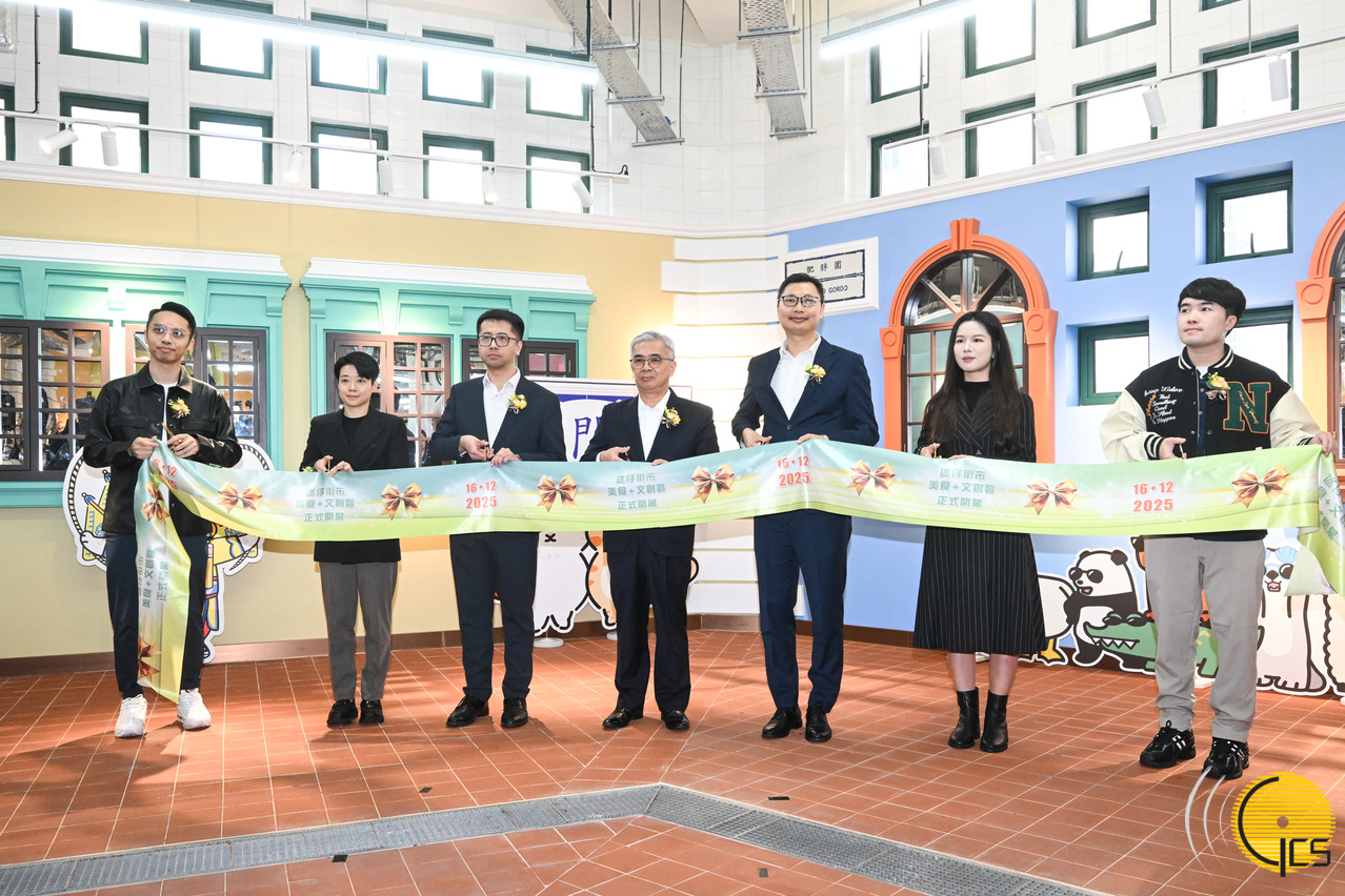 Secretário para a Administração e Justiça, Wong Sio Chak, preside à cerimónia de inauguração da Zona “gastronomia + criatividade cultural” no Mercado da Taipa.