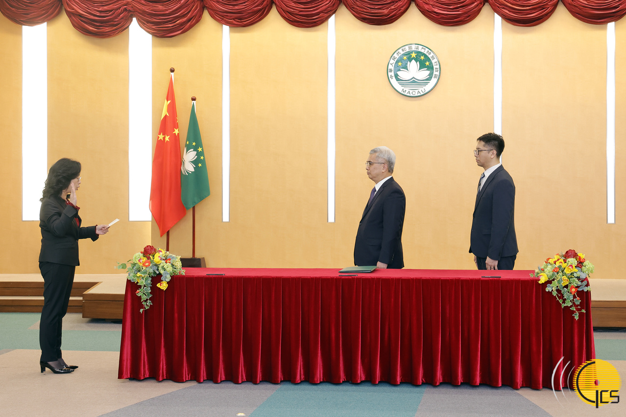 Secretário para a Administração e Justiça, Wong Sio Chak preside à cerimónia de juramento e tomada de posse das novas dirigentes da Direcção dos Serviços de Identificação e do Centro de Formação Jurídica e Judiciária.