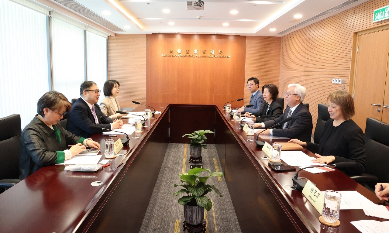 No dia 17 de Dezembro de 2025, uma delegação chefiada pelo Vice-Presidente do Instituto de Estudos Avançados da Administração Nacional de Produtos Médicos, Fang Jun, visitou o Instituto para a Supervisão e Administração Farmacêutica (ISAF) de Macau, tendo ambas as partes trocado opiniões sobre a construção de capacidades do pessoal de supervisão farmacêutica, a partilha de recursos de formação e a cooperação técnica, entre outros, aprofundando ainda mais o intercâmbio e a cooperação entre o Interior da China e Macau na área de supervisão e administração de medicamentos e dispositivos médicos.