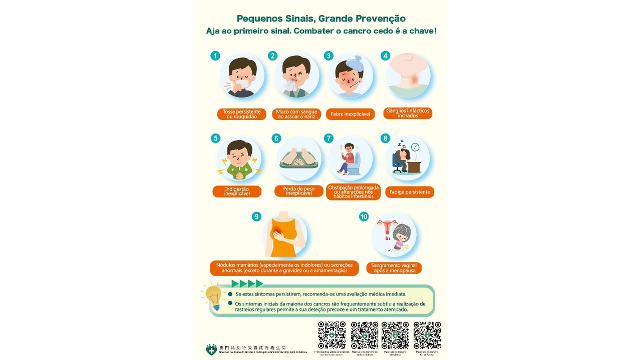 A fim de concretizar os objectivos gerais e os indicadores definidos no “Plano de Acção para Macau Saudável”, promover dinamicamente o Programa “Comunidade Saudável”, e implementar a descentralização de recursos para os bairros comunitários, os Serviços de Saúde têm vindo a desenvolver actividades diversificadas de divulgação científica da saúde. Desde 2024, estes Serviços lançaram o Jogo de perguntas e respostas online “Luta contra o cancro”. Através deste jogo de perguntas e respostas, pretende-se transmitir informações correctas sobre a prevenção e o rastreio do cancro, de modo a sensibilizar e chamar à atenção da população para a prevenção da doença, incentivando a adoptar um estilo de vida saudável e a gerir proactivamente a saúde, reduzindo assim o risco de ocorrência de cancros.