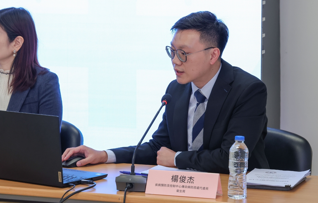 O Chefe Substituto da Divisão de Prevenção e Controlo de Doenças Transmissíveis do Centro de Prevenção e Controlo de Doenças, Dr. Ieong Chon Kit, fez uma apresentação detalhada sobre a actual situação epidemiológica da infecção pelo vírus Nipah, as vias de transmissão, os sintomas clínicos, os aspectos a ter em atenção no diagnóstico e tratamento, bem como o mecanismo de notificação, entre outros. Com vista a reforçar a capacidade dos profissionais de saúde em identificar esta infecção, detectar e notificar, o mais cedo possível, os casos suspeitos, reduzindo assim o risco de transmissão na comunidade, os Serviços de Saúde implementaram medidas de prevenção e controlo em três vertentes principais: