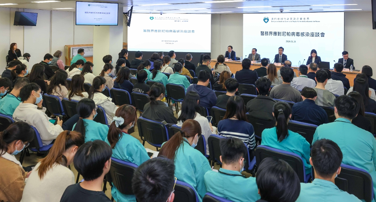 Em relação aos recentes casos de infecção pelo virus Nipah registados no Bengala Ocidental, Leste da Índia, os Serviços de Saúde têm prestado estreita atenção à situação local. Até ao momento, a respectiva situação epidemiológica ainda se limita ao local, pelo que se apela aos residentes para não entrarem em pânico. Com o intuito de prevenir e responder a um eventual surto, os Serviços de Saúde procederam antecipadamente ao planeamento e reforçaram as diversas medidas de prevenção, incluindo avaliação e exame médico nos postos fronteiriços para os indivíduos com historial de viagem relevante e que apresentam sintomas, aumento da capacidade de detecção do vírus, preparação das instalações de isolamento, assim como planos de tratamento médico. Além disso, a fim de aumentar a vigilância do sector relativamente a infecções pelo vírus Nipah, a detecção precoce e a comunicação de casos suspeitos, os Serviços de Saúde realizaram, esta quarta-feira (dia 28 de Janeiro), um colóquio sobre a resposta a infecções pelo vírus Nipah destinado ao sector da saúde, sobretudo as associações de saúde, organizações e instituições sem fins lucrativos que prestam serviços médicos, o que contou com a participação de mais de 100 pessoas.