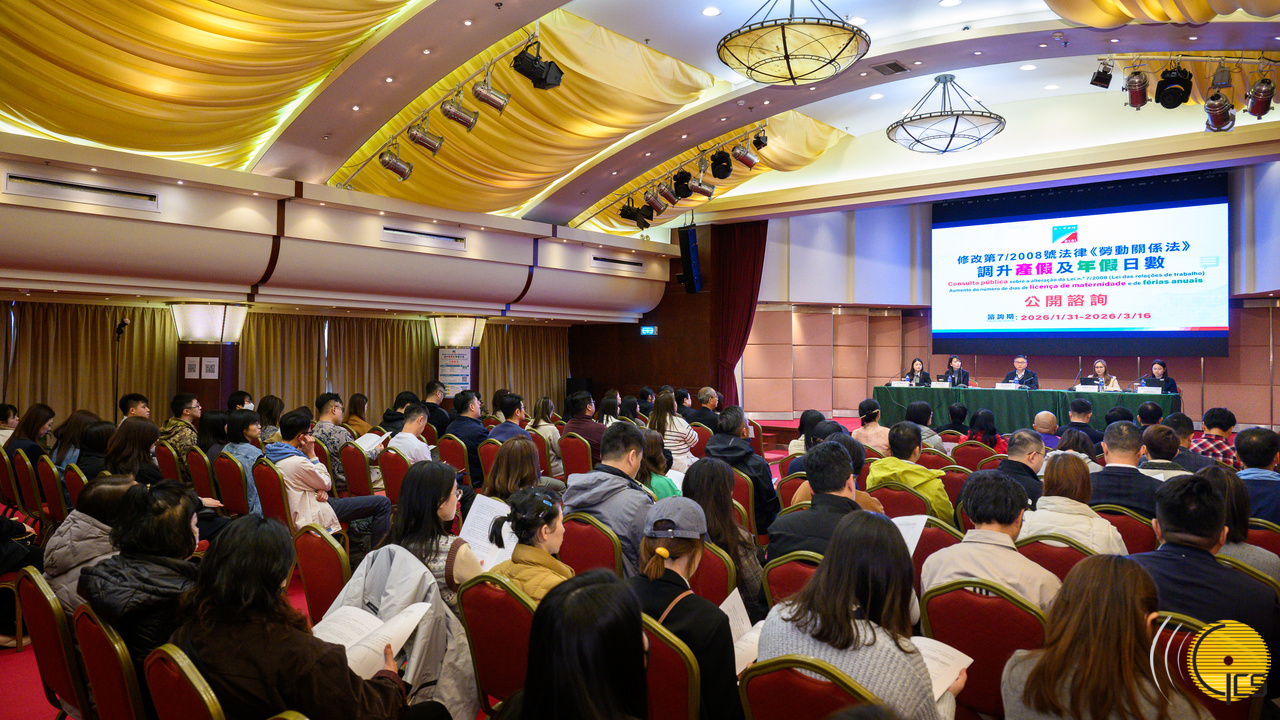 Direcção dos Serviços para os Assuntos Laborais organiza a primeira sessão de consulta pública sobre a alteração da Lei n.º 7/2008 (Lei das relações de trabalho), relativa ao aumento do número de dias de licença de maternidade e de férias anuais.