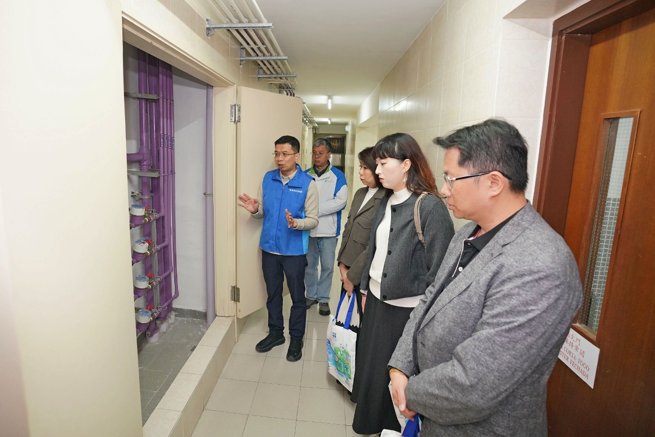 Os membros referidos visitaram, em primeiro lugar, o “Posto de Informação sobre Água Reciclada” na zona de lazer do Edifício Lok Kuan de Seac Pai Van, conhecendo as informações promocionais e o serviço de esclarecimento prestado pelos trabalhadores da respectiva área; também visitaram o sistema de abastecimento de água por tubos duplos, a casa de contadores de água e as instalações de abastecimento de água no edifício. Em seguida, deslocaram-se à Estação de Água Reciclada de Coloane fase I, para obter as informações sobre o seu planeamento, funcionamento diário, capacidade de abastecimento de água, plano de contingência, entre outros.