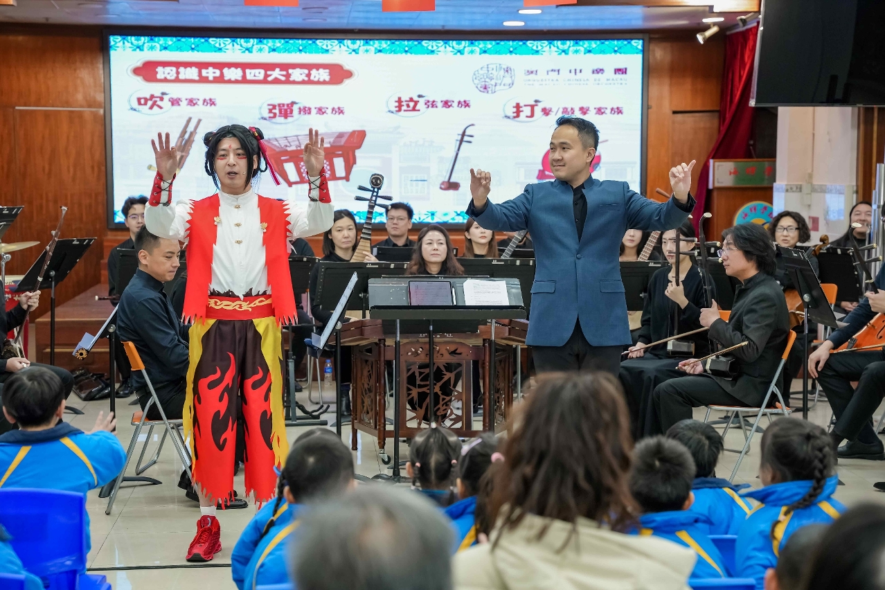 Os espectáculos centraram-se na história entre Ne Zha (Na Tcha, em cantonense), o terceiro príncipe, e o Cão Celestial (Xiaotian Quan), integrando meticulosamente o conhecimento sobre as quatro principais secções da música orquestral chinesa: sopros, cordas dedilhadas, cordas friccionadas e percussão. Sob a batuta do Maestro Residente Liao Yuan-Yu, a OCHM interpretou melodias infantis famosas como Golden e Doraemon, bem como peças tradicionais chinesas, incluindo Tambor de Fengyang, Promoção Gradual e Corrida de Cavalos. Durante as sessões interactivas, as crianças foram convidadas a tocar vários instrumentos tradicionais chineses para sentirem ao vivo o prazer de tocar música chinesa. Os concertos decorreram num ambiente alegre e vibrante, sendo muito aplaudidos tanto por professores como por alunos. Após os espectáculos, os músicos da orquestra ofereceram a todas as crianças folhas para colorir, incentivando-as a expressar a sua criatividade e levando-as a aprofundar o seu conhecimento sobre a música chinesa e a despertar o seu interesse pela mesma.