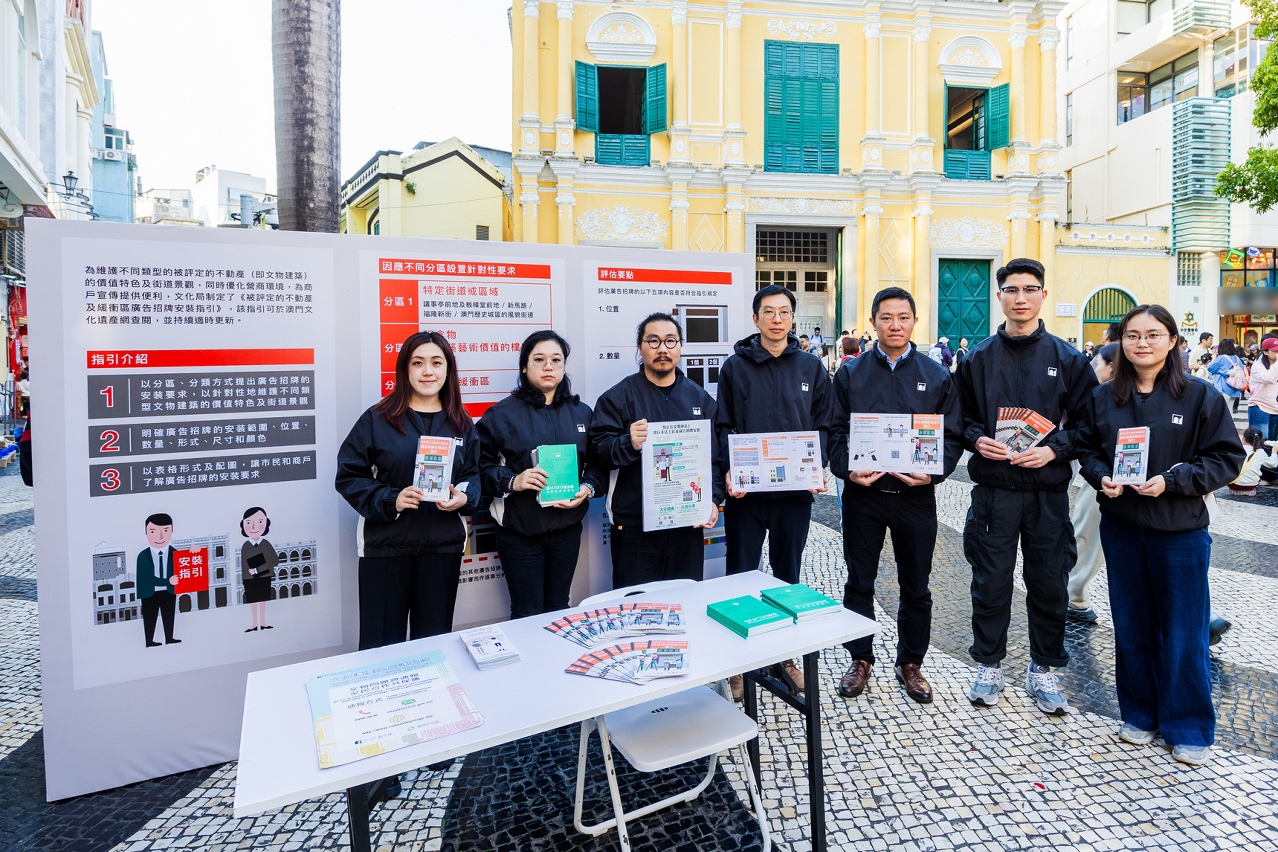 Com o intuito de reforçar a consciencialização da sociedade para a salvaguarda do património cultural e, em especial, aprofundar o conhecimento dos residentes, comerciantes e profissionais sobre as normas de instalação de reclamos e tabuletas em zonas de protecção, o Instituto Cultural (IC) enviou, entre 13 e 26 de Fevereiro do corrente ano, pessoal para visitar estabelecimentos comerciais da zona central de Macau. Esta acção centrou-se na divulgação e explicação das “Instruções para Instalação de Reclamos e Tabuletas nos Imóveis Classificados e respectivas Zonas de Protecção” (doravante designadas por “Instruções”), bem como informações sobre a Lei de Salvaguarda do Património Cultural. Em aditamento, nos dias 14 e 15 de Fevereiro, foi instalado um posto de divulgação jurídica no Largo de S. Domingos, visando reforçar a consciência jurídica na área do património e fomentar um sentido de responsabilidade partilhada na comunidade.