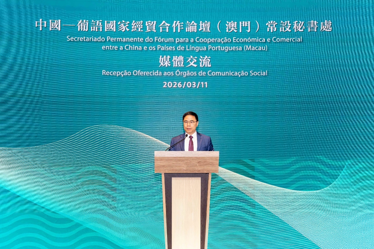 No dia 11 de Março, o Secretariado Permanente do Fórum para a Cooperação Económica e Comercial entre a China e os Países de Língua Portuguesa (Macau) organizou, na Torre de Macau, a Recepção da Festa da Primavera oferecida aos órgãos de comunicação social, durante a qual realizou intercâmbio com os responsáveis e representantes desses órgãos em língua portuguesa, inglesa e chinesa em Macau. O Secretário-Geral do Secretariado Permanente, Ji Xianzheng, participou no evento e proferiu o discurso.