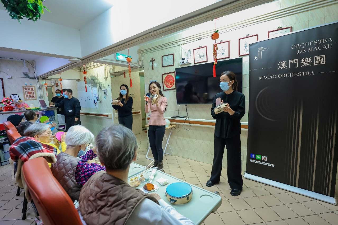 A Orquestra de Macau visitou o Lar de Cuidados “Júbilo Brilhante”, o Lar para Idosos “Yee On”, o Lar para Idosos “Yee On” (Yat Lai), o Complexo de Serviços de Reabilitação “Cruz Iluminada”, o Asilo de Betânia, o Lar para Idosos “Yee On” (Nga San), o Lar de Cuidados “Sol Nascente” da Areia Preta e a Escola Concórdia para Ensino Especial, tendo apresentado um programa de canções festivas bem conhecidas, adaptadas para instrumentos de percussão, incluindo Gongxi Gongxi, Doce como Mel e O Deus da Riqueza Está a Chegar. Além das actuações musicais, houve lugar a sessões interactivas que permitiram aos idosos e alunos tocar os instrumentos e experimentar de perto o prazer da música.