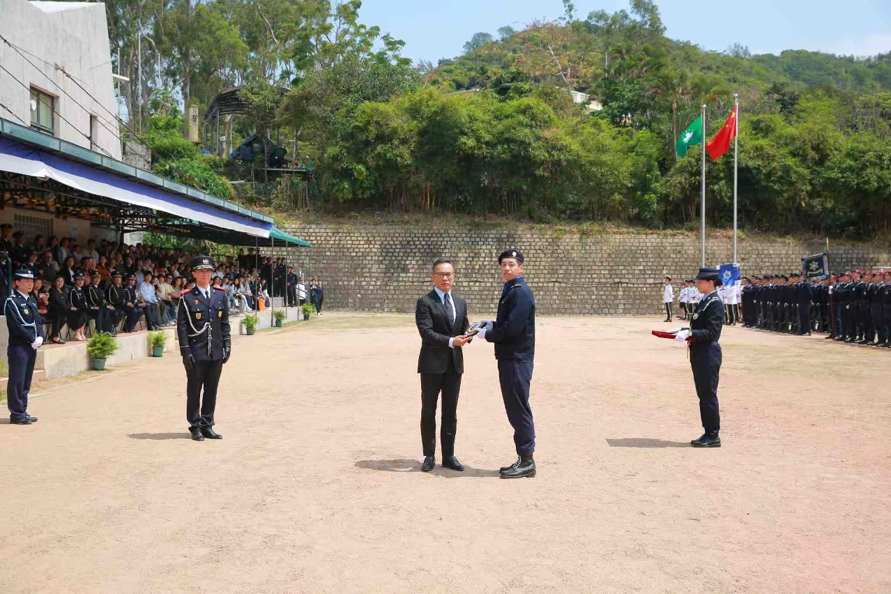 Na cerimónia, o Secretário para a Segurança, Chan Tsz King, entregou os certificados aos representantes dos instruendos, e atribuindo o Prémio de Curso de Formação de Instruendos ao instruendo que obteve a melhor classificação final deste curso de formação. De seguida, os convidados entregaram aos instruendos com desempenho excepcional o prémio de Especialidade da Polícia de Segurança Pública, o prémio de Especialidade da Segurança Contra Incêndios, o prémio de Especialidade dos Serviços de Alândega, o prémio de Língua Chinesa, o prémio de Língua Portuguesa, o prémio de Tiro, o prémio de Educação Física e o prémio de Corrida a Corta-Mato.