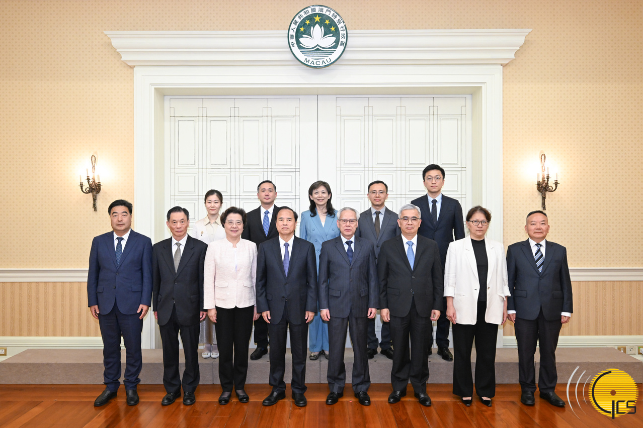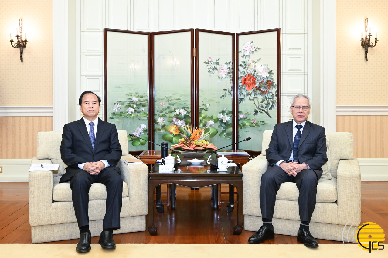 Chefe do Executivo, Sam Hou Fai, reúne-se com o membro da Comissão Permanente do Comité Nacional e director do Comité de Ligação com Hong Kong, Macau, Taiwan e Chineses Ultramarinos da Conferência Consultiva Política do Povo Chinês, Liu Cigui, na Sede do Governo.