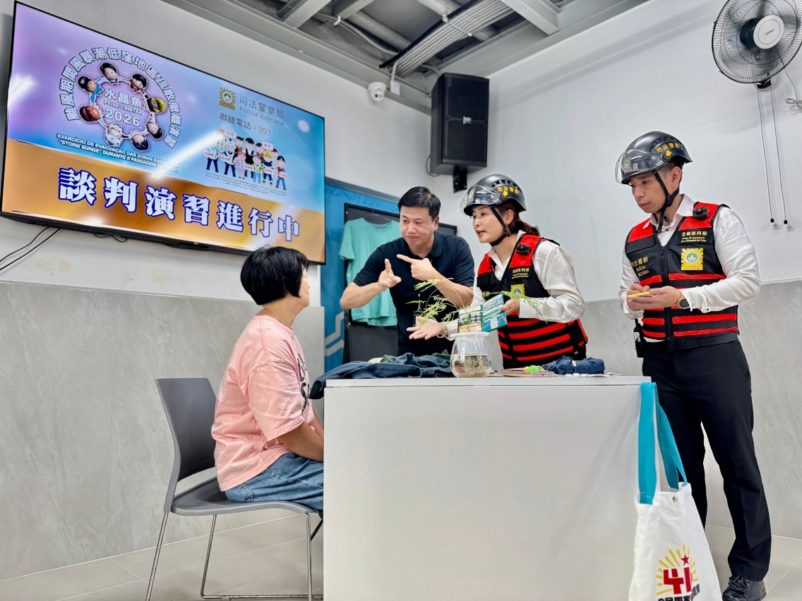 O exercício simulou a passagem, por Macau, do super tufão “Peixe de Cristal 2026”. A Direcção dos Serviços Meteorológicos e Geofísicos emitiu o sinal n.º 10 de tempestade tropical e o aviso preto de “storm surge”, prevendo a ocorrência de inundações graves nas zonas baixas, o que levou à execução do “Plano de Contingência Específico de Evacuação das Zonas Baixas em Situação de ‘Storm Surge’ durante a Passagem de Tufão”. As equipas responsáveis pelo processo de evacuação, compostas por elementos dos Serviços de Alfândega, Corpo de Polícia de Segurança Pública, Polícia Judiciária, Corpo de Bombeiros e Escola Superior das Forças de Segurança de Macau, desencadearam as operações de evacuação nas diversas zonas baixas de Macau, tendo dado aos residentes a conhecer as formas e os percursos de evacuação.