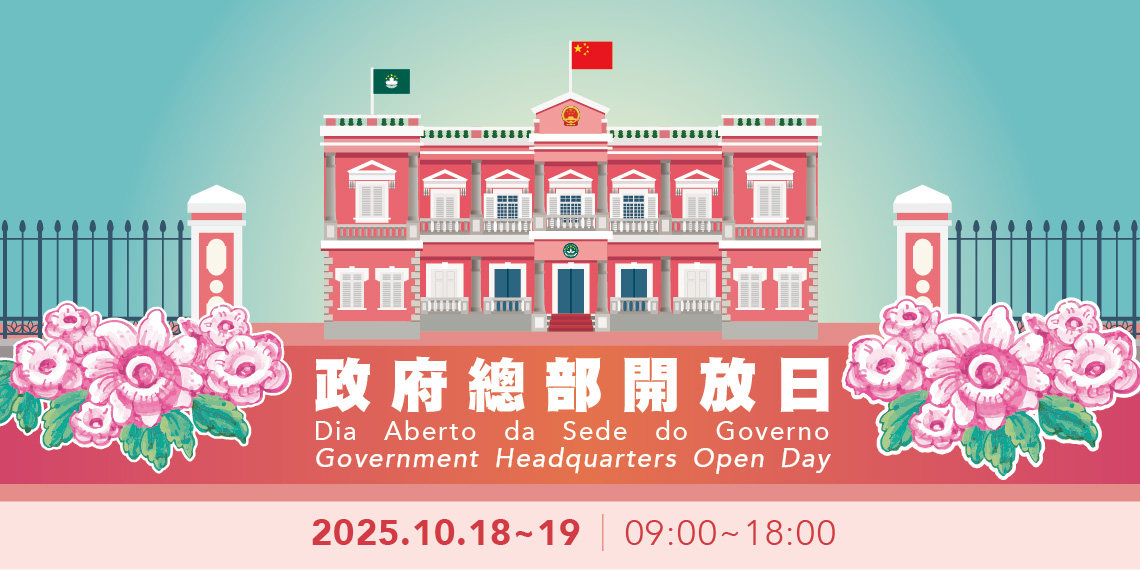 Este ano, a abertura do Palácio Protocolar e jardim da Sede do Governo da RAEM ao público está prevista para os dias 18 e 19 de Outubro, das 9h00 às 18h00.