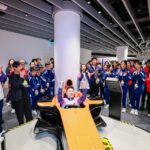 国家金牌运动员代表团一行,包括2024年巴黎奥运会中国跳水“梦之队”成员昌雅妮、陈艺文、练俊杰、陈芋汐、王宗源和教练陈若琳;跳水运动员掌敏洁、卢为、陈佳、林珊、郑九源、胡宇康、朱子锋和白钰鸣;跳水奥运冠军何冲、吴敏霞和陈艾森;体操奥运冠军李小鹏和李珊珊,以及短跑项目的苏炳添等参观博物馆,了解澳门格兰披治大赛车的历史发展与传奇故事。参观期间,运动员积极体验馆内互动项目,亲身体验“车手反应挑战”及“重力速度挑战”等多媒体设施,充分展现了运动员的活力敏捷身手与饱满精神。随后,运动员还与本地青年签名互动,现场气氛热烈。