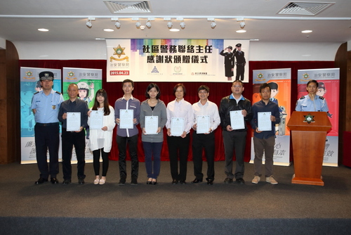《社区警务联络机制》至今实施两年,成效显著。为表扬各社区警务联络主任的工作,治安警察局特意邀请各社区警务联络主任及传媒今天上午到北安出入境事务厅大楼进行 “颁赠感谢状仪式”,以及参观出入境事务厅,藉此深化交流,为来季的工作加强沟通、交换意见、使预防及打击犯罪有更积极的成效。 上午十一时,澳门街坊会联合总会会长梁庆球、副理事长周宜心;物业管理业商会会长谢思训、理事长崔铭文;物业管理专业人员协会会长陈细钿;民众建澳联盟理事长陈德胜等多名社团代表抵达出入境事务厅,获代副局长陈民德警务总长,以及各警务单位多位领导主管热情接待。 活动首先由代副局长陈民德致辞,简述《社区警务联络机制》推出以来取得的成效,在各社区警务联络主任大力支持下,成功地开展以及合办各项社区警务活动,使警方将防罪灭罪讯息广泛传播给社会大众。另外,警方亦积极收集警情,从他们手中取得宝贵有用的信息,并透过这些信息打击潜伏在社区的各类型犯罪。藉著这个机制强化了警方与社区之间直接通报及联系,有助动员民力加强防控以及协助警方维护公共秩序安全。 然后由三位社区警务联络主任代表向在场嘉宾分享有关机制运作以来的果效,接著由代副局长陈民德向各社区警务联络主任进行颁赠感谢状仪式。仪式完结后,由治安警察局警官向嘉宾们讲解出入境事务厅的基本运作情况并带领参观出入境事务厅各项设施。期间嘉宾们相互交流意见,言谈甚欢,互动气氛热烈。 展望未来,治安警察局会进一步发展社区警务,亦会吸纳更多成员加入,希望各社团联络主任继续支持治安警察局,透过社区警务联络机制做到「讯息互通、警民合作、扑灭罪行」的目标。