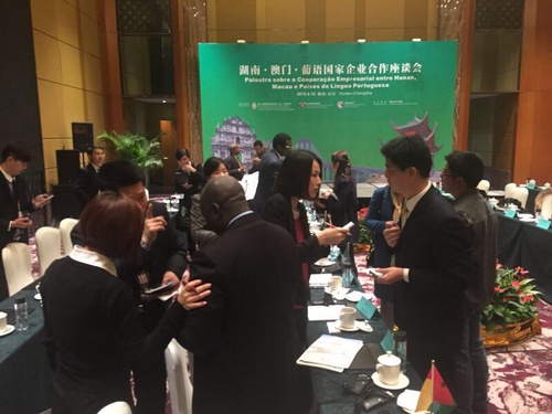 中国-葡语国家经贸合作论坛(澳门)常设秘书处常和喜秘书长率代表团一行三十九人包括“葡语国家中小企业发展研修班”学员於本月9日至11日随澳门代表团赴湖南省长沙市参与“活力澳门推广周•湖南长沙”各项主要活动丶设置葡语国家馆, 并举办湖南-澳门-葡语国家企业合作座谈会等经贸促进活动。 为进一步宣传中葡论坛及澳门平台, 展示和介绍葡语国家发展状况, 中葡论坛常设秘书处在湖南国际会展中心A厅设置了“葡语国家馆”, 馆内通过展品、图片及文字等重点展示安哥拉、巴西、佛得角、几内亚比绍、莫桑比克、葡萄牙和东帝汶七个葡语国家的社会经济情况, 以及中葡论坛的发展和澳门服务平台作用。 4月10日, 澳门特区经济财政司梁维特司长丶湖南省杜家豪省长丶中央人民政府驻澳门特别行政区联络办公室姚坚副主任丶中葡论坛常设秘书处常和喜秘书长丶韦尚德副秘书长(葡语国家指派)丶陈敬红副秘书长(澳门特区政府指派)及澳门经济局苏添平局长等到“葡语国家馆”参观和合影。 同日上午, 中葡论坛常设秘书处丶澳门贸易投资促进局及湖南省商务厅假长沙北辰洲际酒店共同举办了 "湖南-澳门-葡语国家企业合作座谈会"。出席的湖南企业代表主要来自农业科技丶建筑工程、基建工程丶交通规划丶勘测设计丶能源丶电力丶机械、经济科技合作丶劳务丶人力资源丶进出口贸易等多家具实力的企业。座谈会上, 中葡论坛常设秘书处及澳门贸促局分别介绍中葡论坛、葡语国家、澳门服务平台及澳门投资环境等情况。葡语国家派驻代表和湖南企业进行了热烈而充分的互动交流, 袁隆平农业高科技股份有限公司副经理冯霞辉女士还分享了在东帝汶投资的经验。另外, 中葡论坛代表团还考察参访了长沙国家高新科技开发区和湖南中联重科股份有限公司, 实地了解湖南开发区及企业的先进管理和发展思路。 通过这次湖南系列活动, 进一步宣传了中葡论坛和澳门平台作用, 推介了葡语国家投资营商环境和优惠政策, 促进了中国内地尤其湖南、澳门与葡语国家企业间的务实合作。为湖南企业与葡语国家的合作交流牵线搭桥, 为有意在葡语国家投资并寻求合作伙伴的企业提供服务, 发挥澳门作为中国与葡语国家商贸服务平台作用。