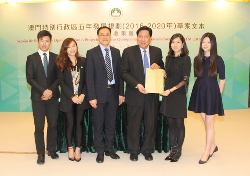《澳门特别行政区五年发展规划(2016-2020年)草案文本》於4月26日公布并展开为期两个月的意见收集工作。五年发展规划是未来五年特区经济社会发展的总体蓝图,是政府与广大居民共同努力的行动纲领。因此,广泛听取社会各界意见、凝聚民智、汇合民力,对於五年发展规划的制定和实施是相当重要的。为此,专责本次意见收集工作的政策研究室今日(9日)於政策研究室进行青年工商社团专场的意见收集会。 出席意见收集会的青年工商社团,包括:中华总商会青年委员会、澳门厂商联合会青年委员会、国际青年商会中国澳门总会、澳门青年企业家协会、澳门菁英会、泛澳青年商会、濠江青年商会,资深青商协会共8个工商青年社团的30名代表出席意见收集会,并提交了5份的书面意见。 共20名社团代表发言,包括:澳门中华总商会青年委员会主任莫志伟、副主任卢德忠、副主任黄中原,澳门厂商联合会青年委员会主任刘凤玲、委员黄诗琳、委员李骏纳,国际青年商会中国澳门总会会长劳锦辉、财务长罗颂辉,澳门青年企业家协会会长何嘉伦、常务副理事长林嘉伟,澳门菁英会主席颜奕萍、副秘书长欧伟强、文康部部长卢晓翩、副部长贾瑞,泛澳青年商会会长陈蓓、副会长梁家豪,濠江青年商会会长潘兆楠、理事蔡德昭,资深青商协会理事长余达波、会员大会主席谭泽明。 出席意见收集会的社团代表均对特区政府首份五年发展规划内容表示支持,意见收集会中,与会者踊跃发言,并为完善五年发展规划草案文本提出了很多建设性的意见和建议,包括:人力资源政策、扶持和推动中小企业发展、培养不同产业人才、培养及吸引中葡双语人才、协助中小企利用电子商务、建立创业投资平台,为青年创业者提供资讯、支援青年人到内地发展、扶持文化创意产业发展、设立文创中心、支持会展业发展,完善相关配套、建立专业认证制度、环境保护、加强控车,提倡绿色出行、公共房屋政策、旅游业多元等。有意见关注新城A区人工岛连接澳门和离岛的规划,当中包括桥梁和道路,以配合港珠澳大桥通车。另有意见指政府各司应建立恒常会议机制,以加强政府各部门之间的沟通,从而提升特区政府的执行力。亦有意见指五年发展规划草案文本应多在发展体育旅游方面著墨。 政策研究室刘本立主任总结时表示,五年规划草案文本是反覆与五司多次沟通而制定,而文本内容在青年创业和扶持中小企也有较多的著墨。五年规划草案文本的意见收集工作,对正式文本编制非常重要,十分感谢出席的各位青年工商界人士为五年发展规划草案文本提供宝贵意见及建议,将认真和尽力做好意见收集的工作,及时把有关的意见整理并反馈给建设世界旅游休闲中心委员会。 《澳门特别行政区五年发展规划(2016-2020年)草案文本》收集意见的渠道和方式多元化,居民和团体可於6月底前透过到建设世界旅游休闲中心委员会网站(www.cccmtl.gov.mo),或通过政策研究室的电邮(message@gep.gov.mo)、邮政信箱(澳门邮政信箱1201号)、联络电话(+853-2882 3610)、传真(+853-2882 3426),预约亲临政策研究室(地址:澳门氹仔体育路185-195号),以及通过所属团体转交等方式,对草案文本发表意见和建议。