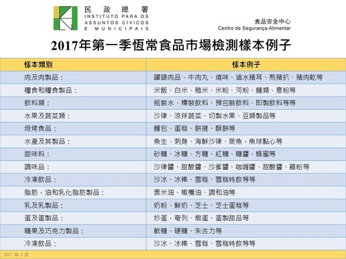 2017年第一季恆常食品巿場檢測樣本例子