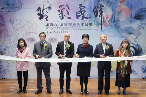 由文化局主办的《玲彩霞晖——潘锦玲.潘锦霞美术作品展》於三月三十一日(星期五)下午六时三十分在卢廉若公园春草堂举行开幕仪式,中央人民政府驻澳门特别行政区联络办公室文化教育部部长徐婷、文化局副局长杨子健、澳门日报社长陆波、澳门美术协会顾问陈继春、参展艺术家潘锦玲及潘锦霞出席仪式。