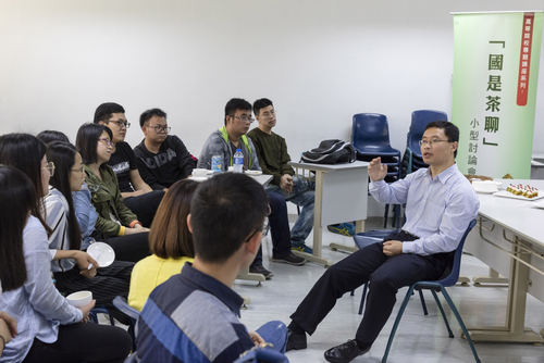 牟效波助理教授與學生們在“國是茶聊”中暢談憲法與基本法及相關法律議題。