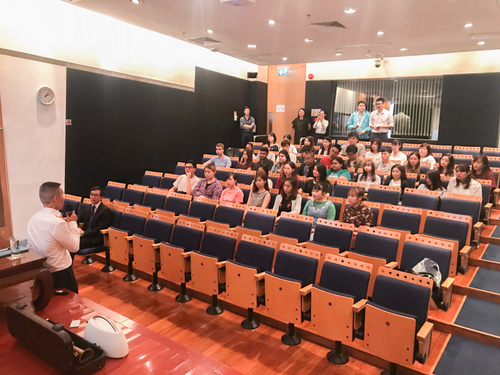 戴建业首先以自己在葡萄牙求学的例子启发学生要突破藩篱、勇於尝试,随后介绍粤港澳大湾区的发展情况以及分享自己走访大湾区城市的见闻,建议学生未来可立足澳门、放眼湾区,把握国家发展的机遇及丰富个人发展的路径。戴建业亦以互动的方式与学生探讨了品牌培养及知识产权保护的重要性。