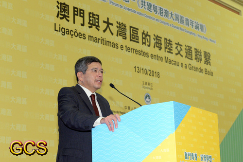 運輸工務司司長羅立文在“澳門與大灣區的海陸交通聯繫”分論壇上致辭