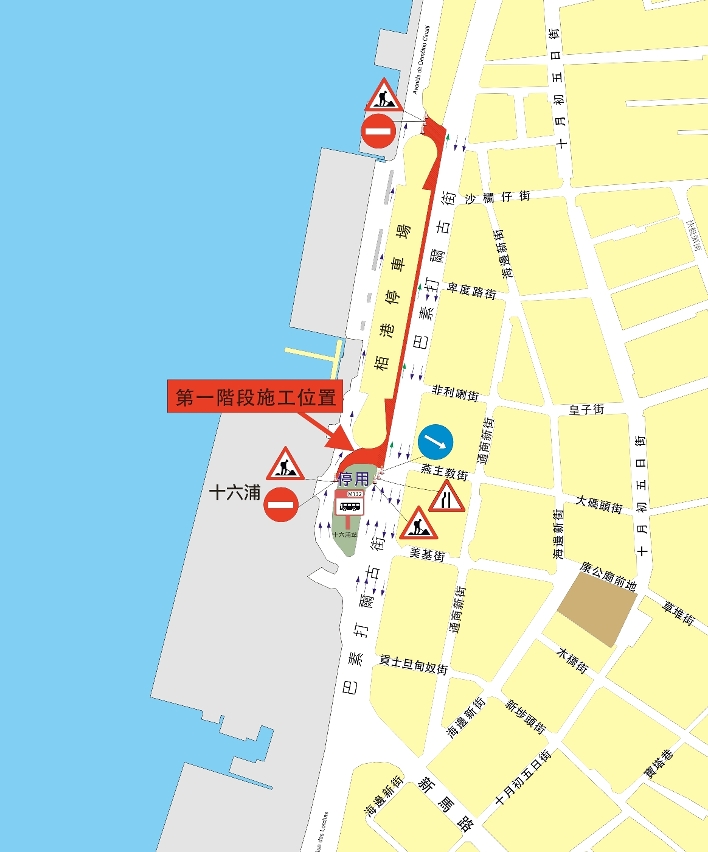 配合市政署进行“内港北雨水泵站箱涵渠建造工程”,4月6日(周六)上午10时起,巴素打尔古街、爹美刁施拿地大马路一带分阶段实施交通改道措施(详见附表一);其中,巴素打尔古街由沙利头往新马路方向维持两线行车,并于每日下午5时至翌日上午9时30分尽可能维持巴素打尔古街于新马路往梨头街市的一条行车线,以减低繁忙时段之交通压力。