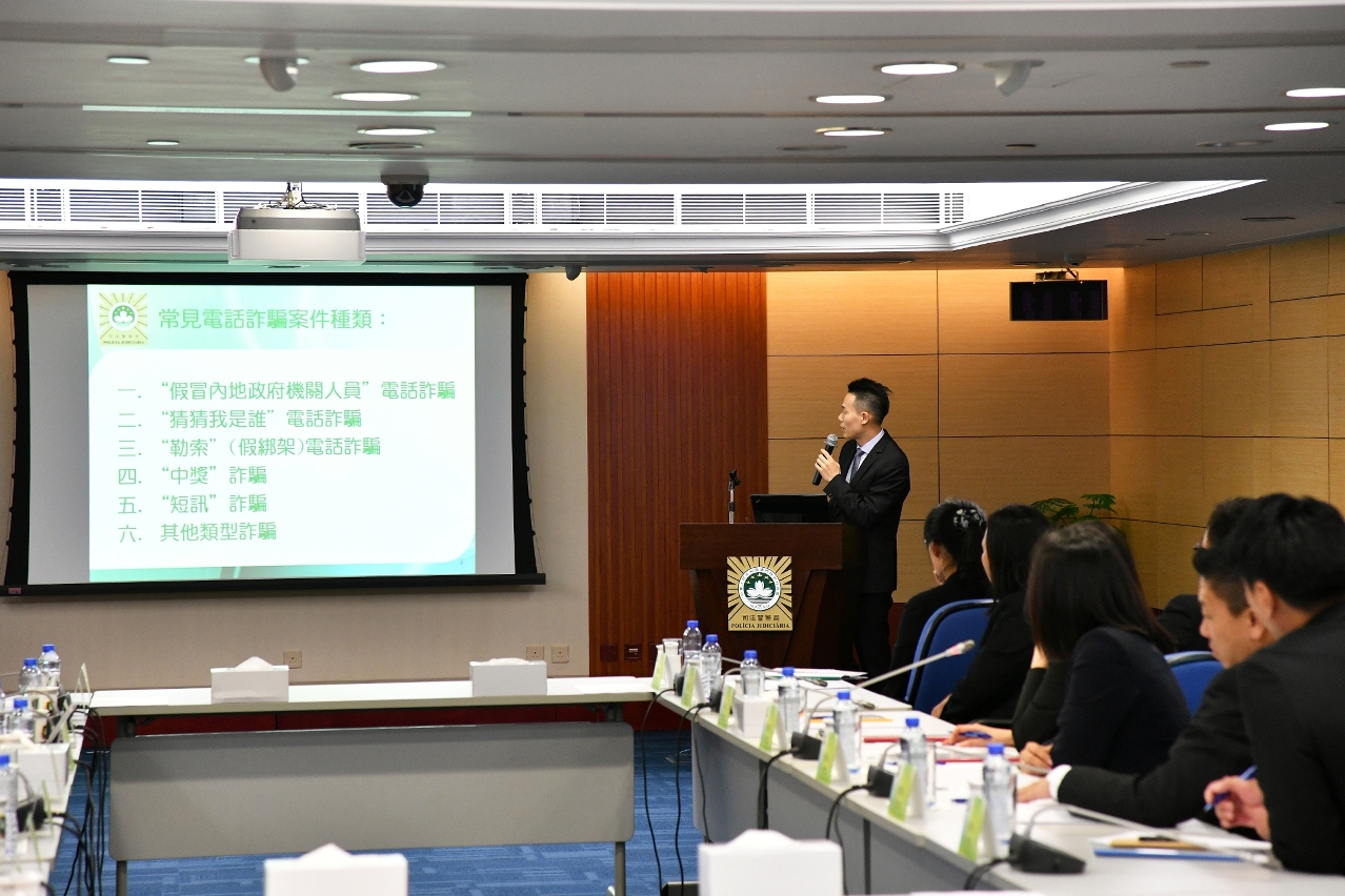 因应近期“假冒政府机关人员”电话骗案再现,多人被骗巨额款项,其中大部分骗款是透过转帐方式被转移至内地或香港的银行帐户。为及时阻截被骗赃款转移,挽回被害人的损失,司法警察局与香港警务处商业罪案调查科反诈骗协调中心举行会议,商讨加强两地警务合作,进一步完善两地银行的紧急止付机制,更有效预防和打击电讯诈骗犯罪。