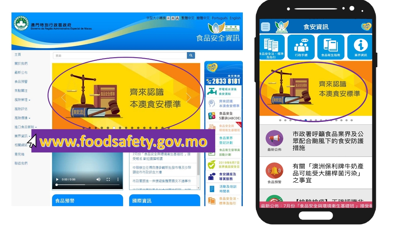 市政署亦继续向食品业界及社会大众加强宣导正确认识食安标准,一方面提升业界守法经营意识,同时亦强化居民透过学习标准,以科学、理性的角度分析及接收各种食安资讯,避免误信谣言。市政署食品安全厅积极深入社区、学校、民间社团教育市民大众及食品业界正确认知食安标准及相关知识,面向公众的讲座合共开办一千四百多场,参加人数约七万人次;至今针对食品业界开办各类课程,合共超过四千名从业员完成培训;同时编制了一系列有关食安标准的宣传单张、教育短片、文章,多元化地推动食安科普教育。市民可透过食安资讯网页www.foodsafety.gov.mo或下载食安资讯手机应用程式〈食安资讯APP〉,了解更详细内容。