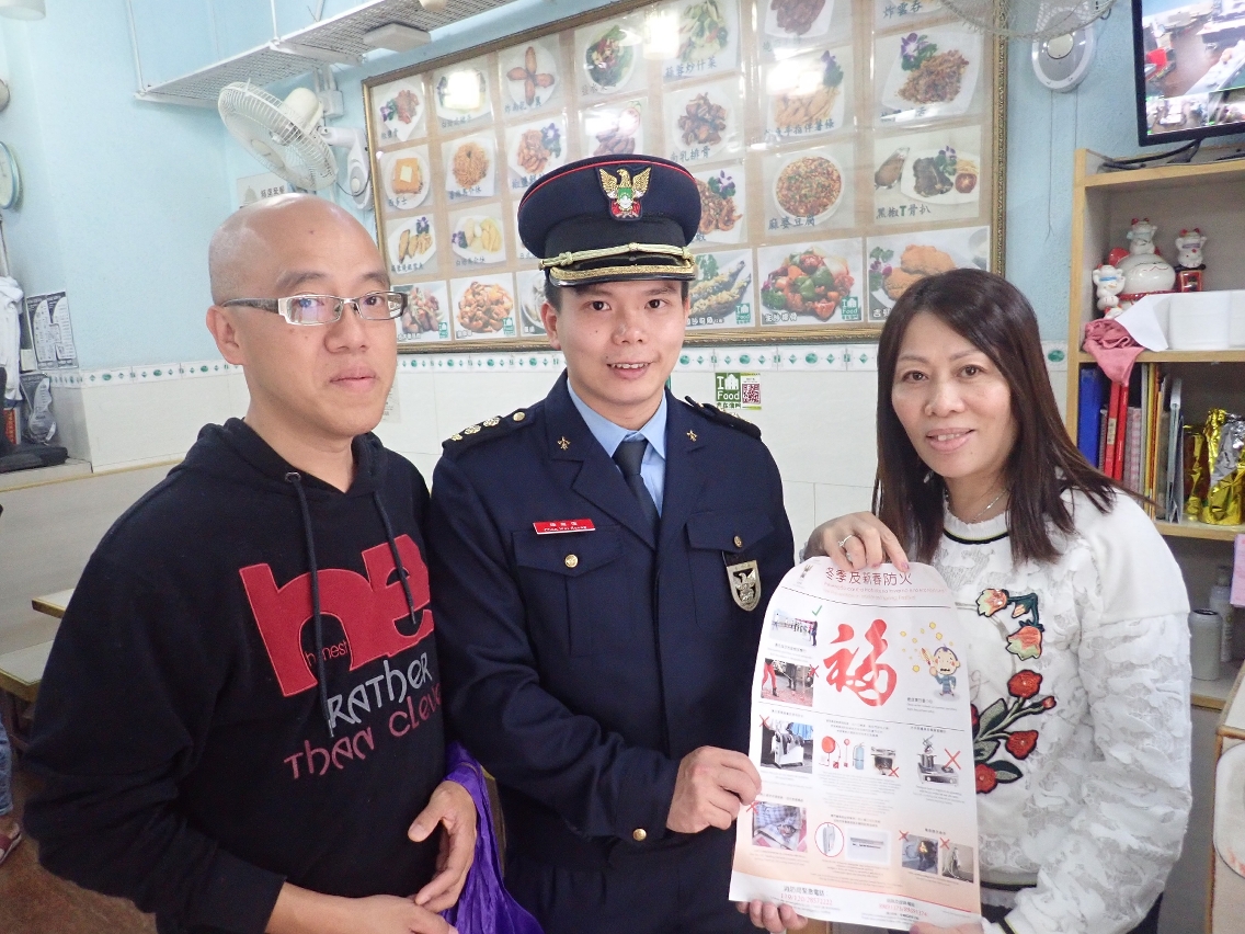 本澳已踏入冬季,天气相对干燥,火灾也相应较易发生,消防局持续关注民居及食肆关于电器及燃气炉具的使用安全。为加强居民及食肆负责人关注电器及燃气炉具的使用安全,及提高社区内的防火安全意识,减少意外事故发生,于本年12月26日,消防局派员拜访“澳门提柯区坊众互助会”,双方就该区的消防工作进行交流,听取该区就消防安全的意见及建议。活动中消防局人员联同互助会负责人共同到区内,向居民和食肆负责人派发防火宣传品,提醒居民及商铺冬季防火的注意事项,以提升社区内的防火安全意识。