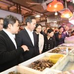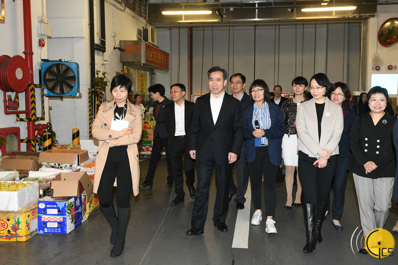 国家商务部部长助理任鸿斌(前排左二)在市政署市政管理委员会副主席柯岚(前排左四)陪同下,到批发市场考察供澳食品的市场供应情况。