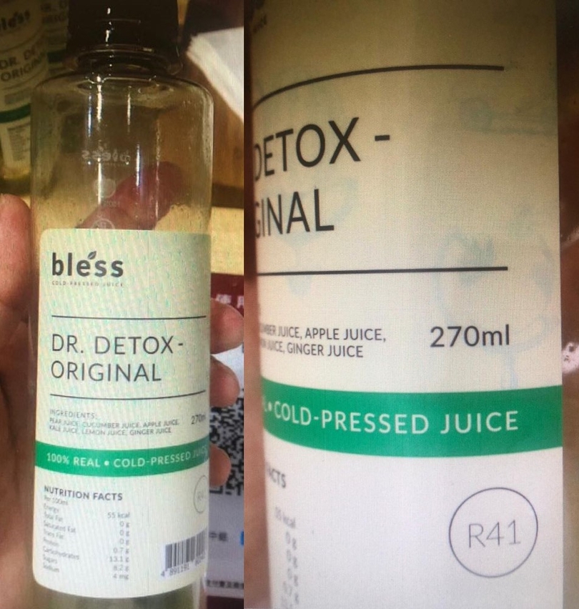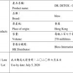 市政署透过恒常食品事故监察系统,获悉香港食物安全中心公布,于一个香港生产的果汁饮品样本中验出含十亿分之六十三的展青霉素。涉事产品名称为「DR.DETOX-ORIGINAL」,品牌是bless,原产地为香港,香港分销商为Bless International Group Limited,容量是每瓶二百七十毫升,此日期或之前食用:二○二○年七月五日。
