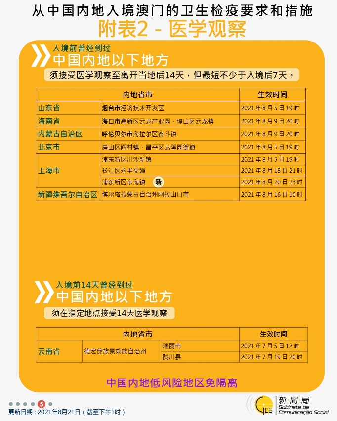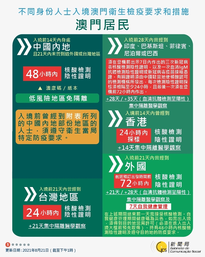 【图文包】2021/08/21最新入境澳门卫生检疫要求和措施